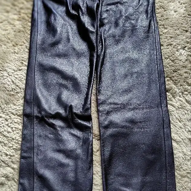 블랙 가죽 팬츠입니다. 청바지 타입으로 평소에도 추천합니다. 천연 가죽만의 질감이 있습니다.