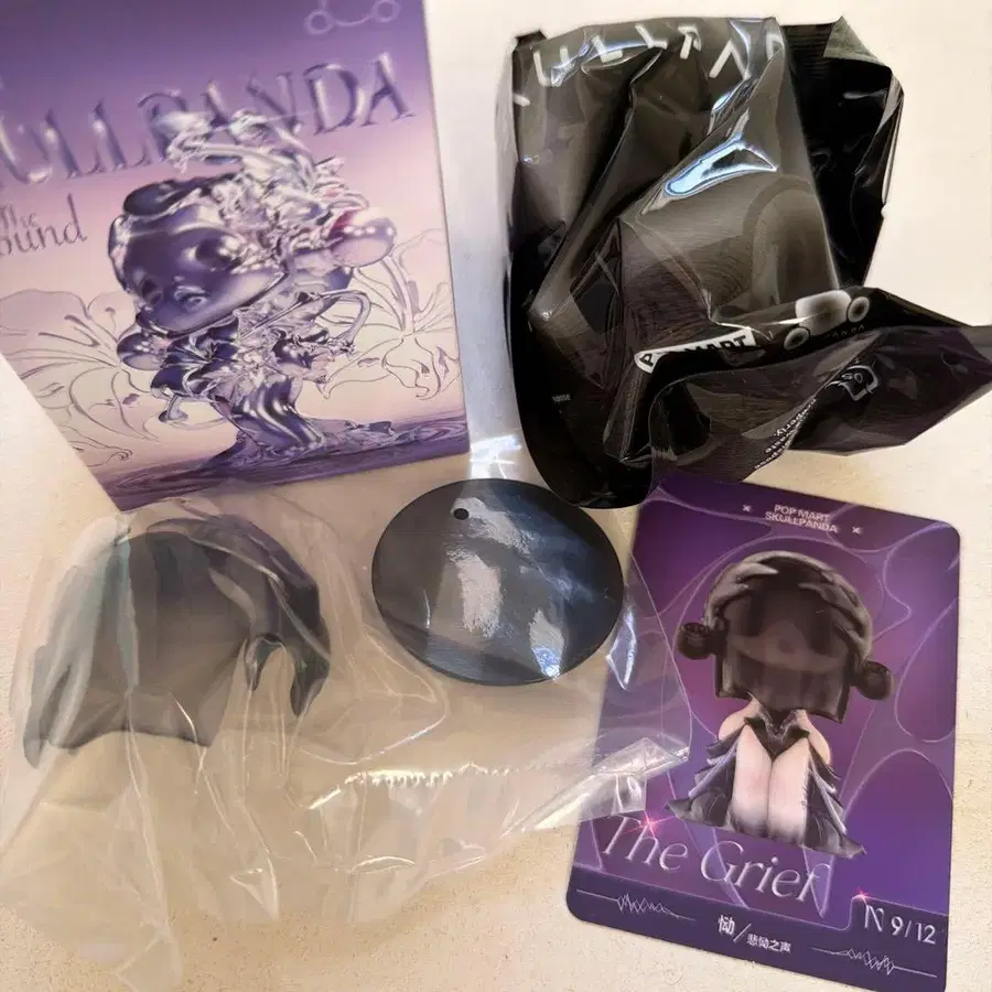 POPMART SKULLPANDA TheSound 시리즈 The Grief 피규어, 받침대 & 베일, 카드의 세트 내용물 확인을 위해 상자만 개봉 완료했습니다. 방수 대책, 에어캡 포장으로 발송합니다. 팝마트 스컬팬더 더사운드