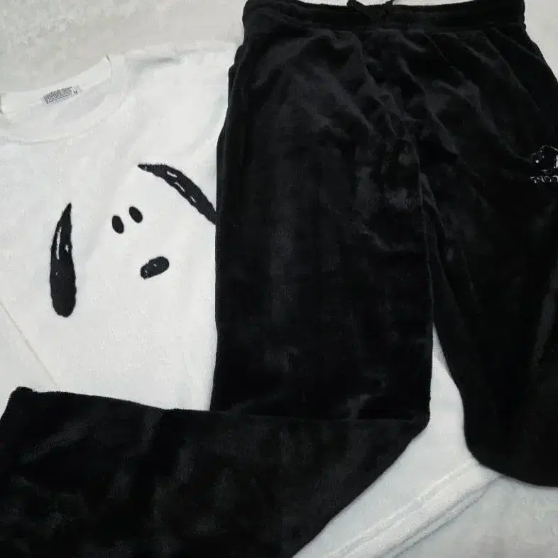 스누피 디자인이 특징인 부드러운 보아 플리스 세트.