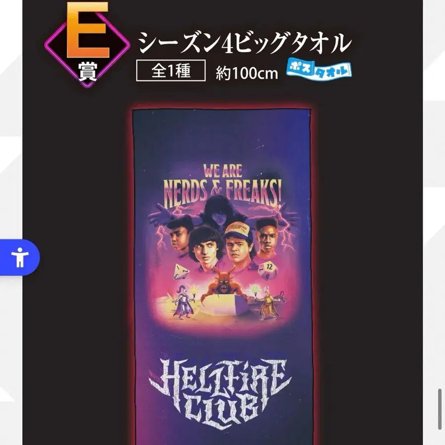 스트레인저 씽스 시즌 4 빅 타월, 약 100cm의 컬러 디자인. 스트레인저 씽스 미지의 세계 제일복권 상품입니다. 새 상품이지만 자택 보관이므로 잘 부탁드립니다. E상 시즌 4 빅 타월 스트레인저 씽스 스트신