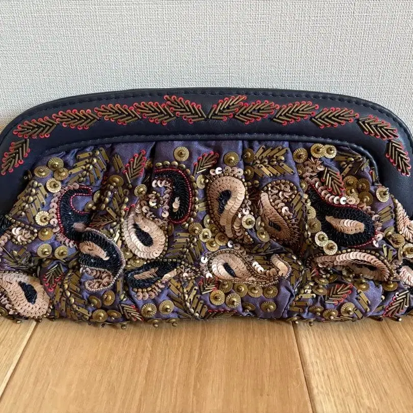 자수와 비즈 장식의 오리엔탈 분위기 클러치백. 한 번 결혼식 경사에 사용했습니다. 심플한 드레스에 잘 어울립니다 ^^ - 색상: 네이비 & 퍼플 - 디자인: 자수와 비즈 장식 - 소재: 합성 피혁 - 스타일: 클러치백 - 특징: 플랫 디자인 방문해 주셔서 감사합니다.