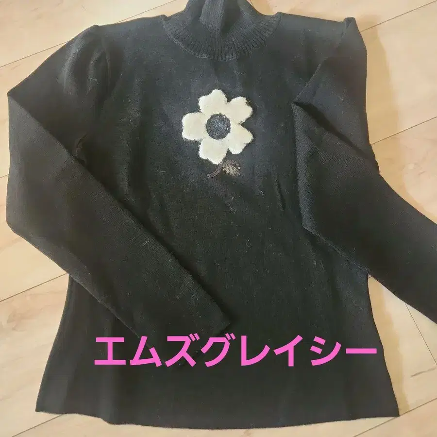 엠즈 그레이시 하이넥 니트 블랙 꽃 모티브