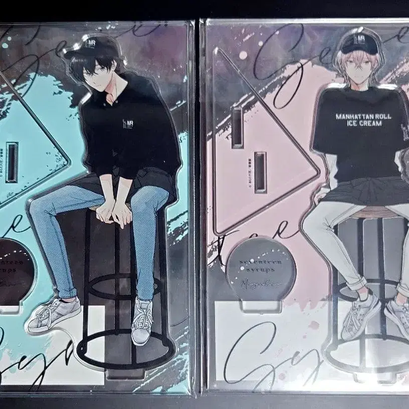 아라타 롯카 선생님의 세븐틴 시럽스, 맨해튼 롤 아이스크림 콜라보 아크릴 스탠드(미즈키, 켄타로)입니다.