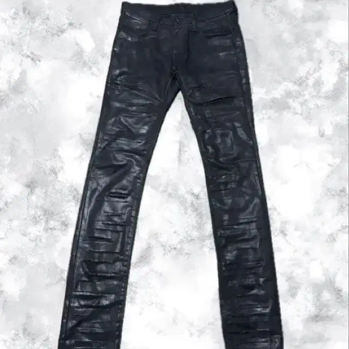 스키니 실루엣의 블랙 가죽 팬츠입니다.