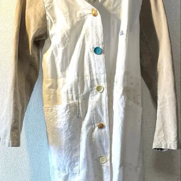 봐주셔서 감사합니다. keisuke kanda 스프링 코트 어깨 너비 - 40cm 가슴 너비 - 43cm 소매 길이 - 56cm 기장 - 92cm (개인 측정으로 약간의 오차가 있을 수 있습니다.) 빈티지 원단 100% 표시입니다. 데님 소재 부분의 얼룩은 소재 특성상입니다. 전체적으로 큰 데미지는 보이지 않습니다. 중고 제품이지만, 좀처럼 다른 곳에서는 볼 수 없는 것이므로 이해해 주시는 분께 양도하고 싶습니다. 검토 부탁드립니다.
