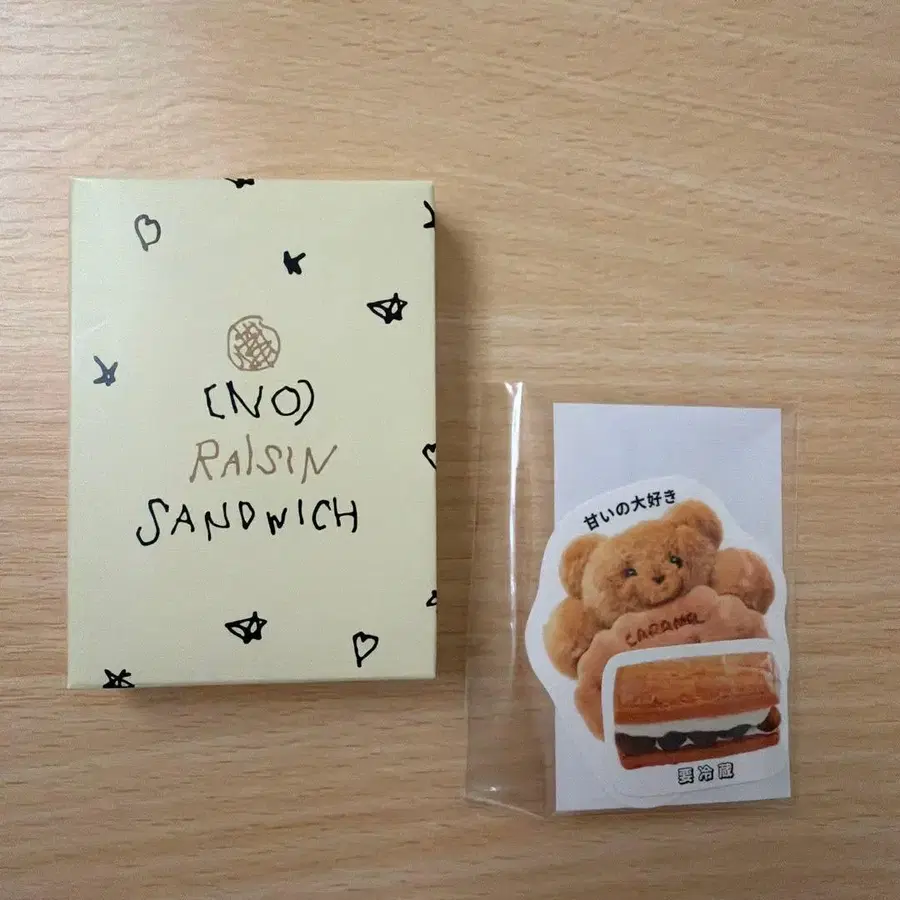 노 레이즌 샌드위치 가챠가챠 스티커로, (단 것 아주 좋아)와 (냉장 보관)입니다. 미사용 새상품입니다. 상자는 접어서 발송됩니다. 찾으시는 분께 양도해 드릴 수 있다면 기쁘겠습니다 ◎