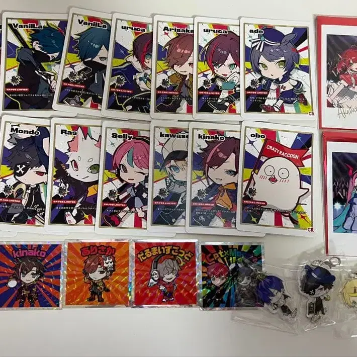 [ CR 페스티벌 2024 트레이딩 카드 ] x 14장 [ CR 페스티벌 2025 랜덤 폴라로이드풍 카드 ] 아카미 카루비 사인 ⭐️ 홀로 Selly 사인 [ 클레이지 라쿤 맨 초코 ] x 5장 [ GIGO 콜라보 카페 아크릴 참 ] 도구라 mondo Mainy Selly [ 이키나리! 스테이크 다이컷 스티커 ] 오보 x 2 자스퍼