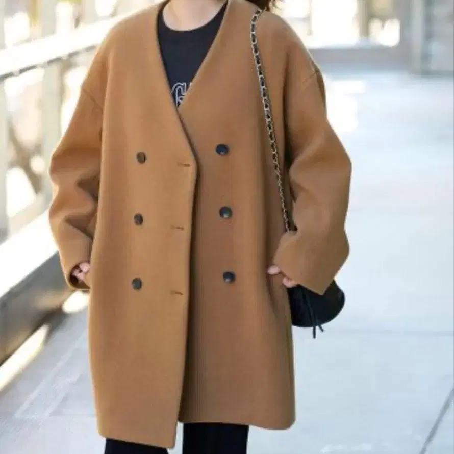 VESTINA 컬러 코트 카멜 캐시미어 롱 코트 더블 버튼