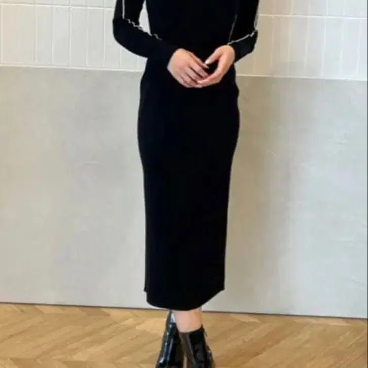 eimy 로고 자수 블랙 니트 원피스 F 사이즈