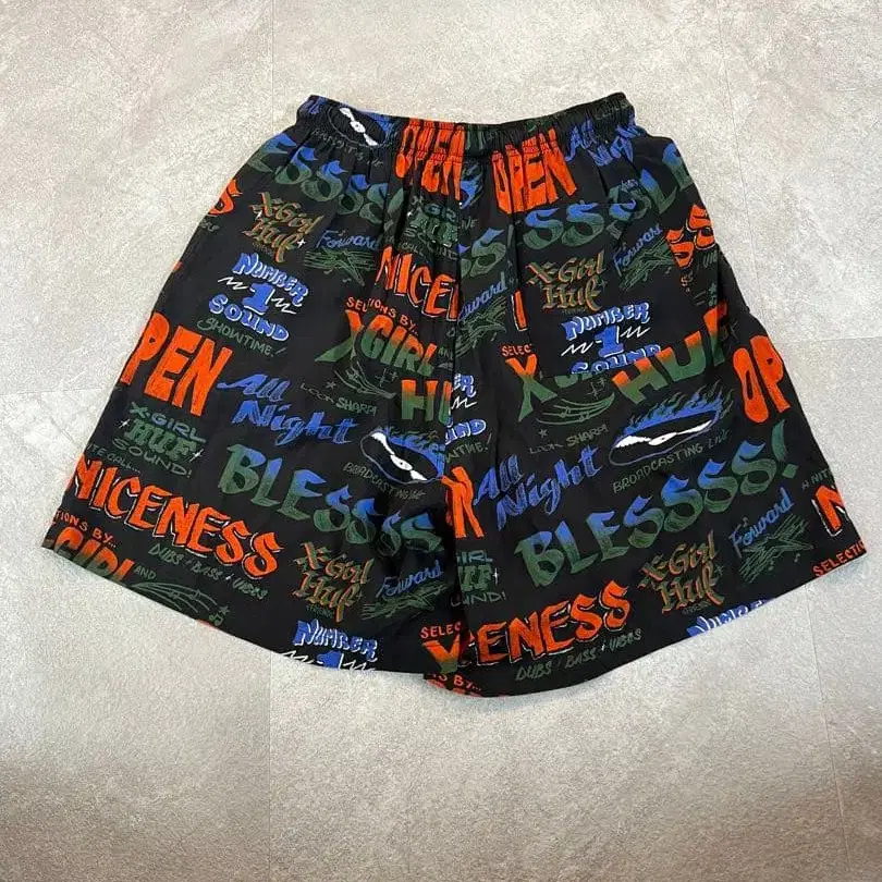 >>X-girl x HUF>>엑스걸 x 하프 콜라보레이션 그래픽 올 패턴 디자인 숏팬츠