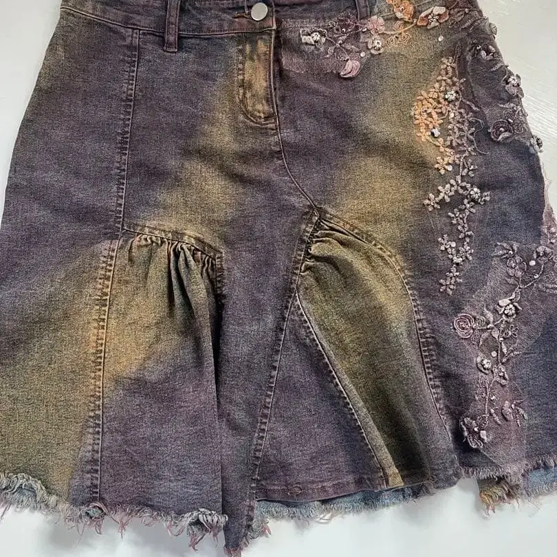 자수 플레어 데님 스커트 런던