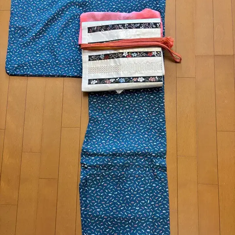 동백꽃 차차차 파랑 그라데이션 후쿠로 오비