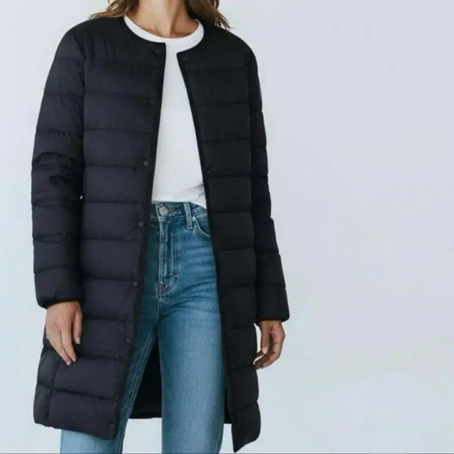 UNQLO 노카라 울트라 라이트 다운 컴팩트 코트 롱 다운 코트 울트라 라이트 다운 이너 다운 2way 옷깃 조정 버튼 포함 black 블랙 1회 착용 수납 봉투 없음 M 어깨 너비 38cm 가슴 너비 46cm 기장 88cm 소매 길이 58.5cm