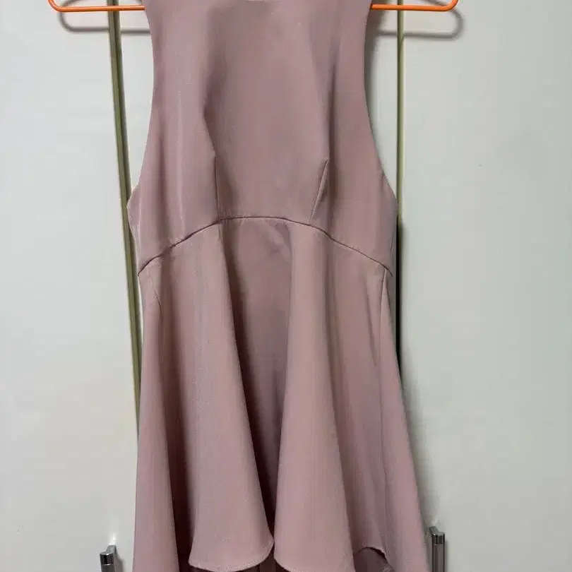 밀리 슬리브리스 디자인의 핑크 플레어 상의 더스티 핑크 색상으로 매우 귀여운 색감입니다. 1회 착용.