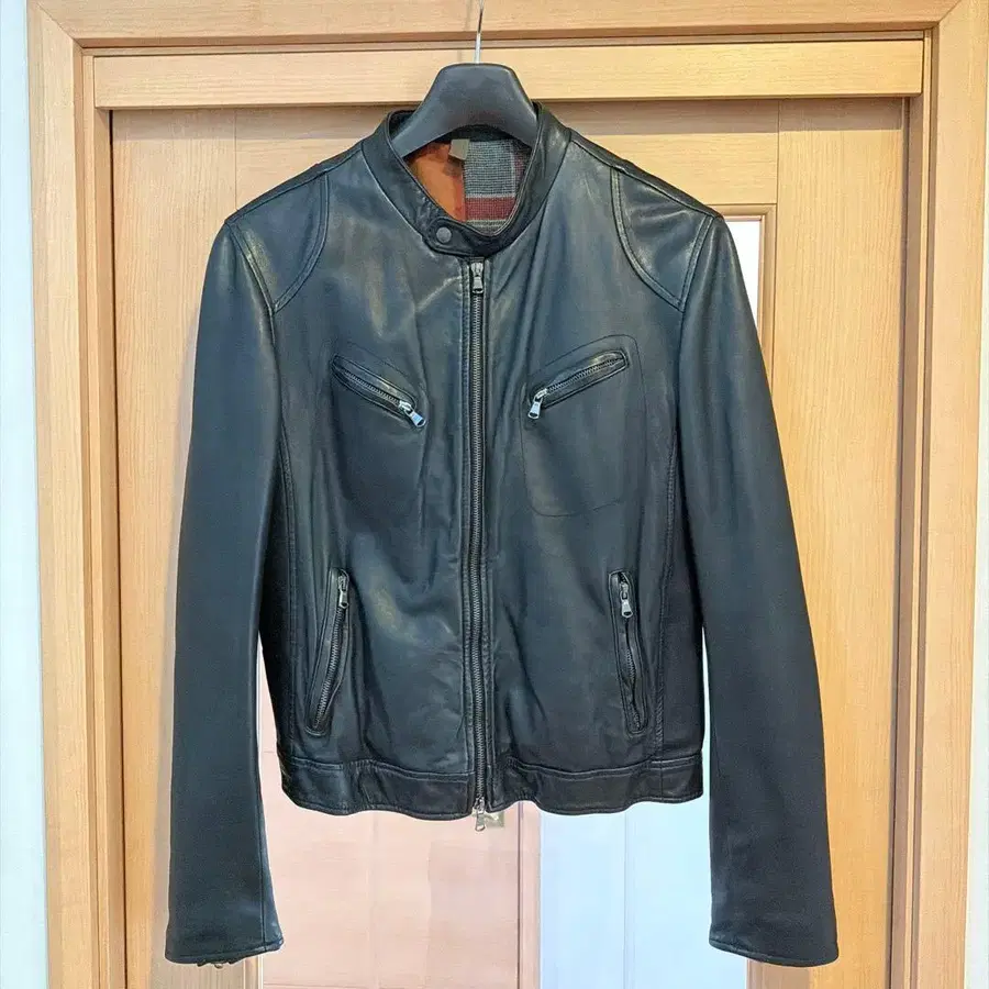 심플한 디자인의 블랙 싱글 라이더 자켓.