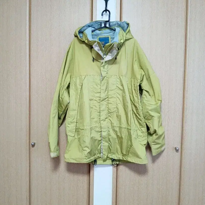 자동 번역되었어요. 원문보기탈부착 가능한 후드가 달린 심플한 옐로우 그린 색상의 마운틴 파카.