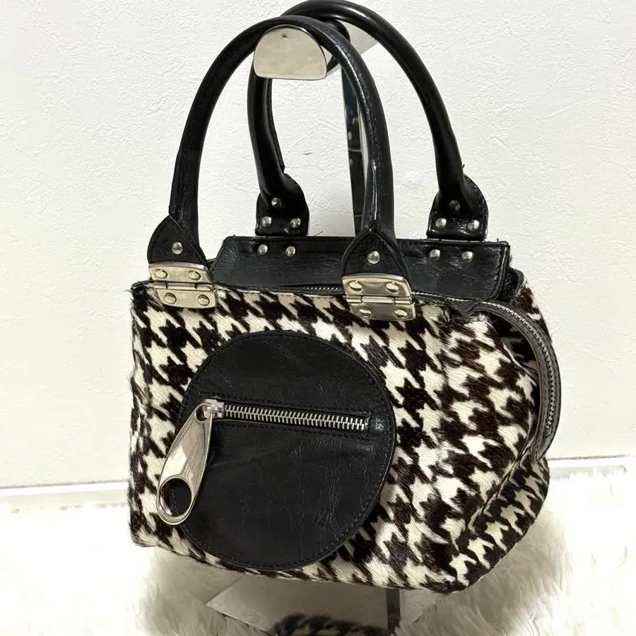 • 2way 퍼 대나무 핸들 핸드백