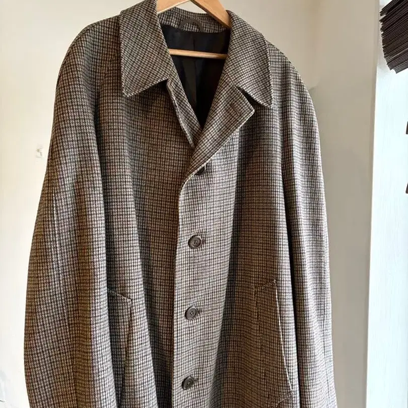 컨디션 최상 매킨토시 체스터 코트 하운드투스 체크 패턴 울 100%