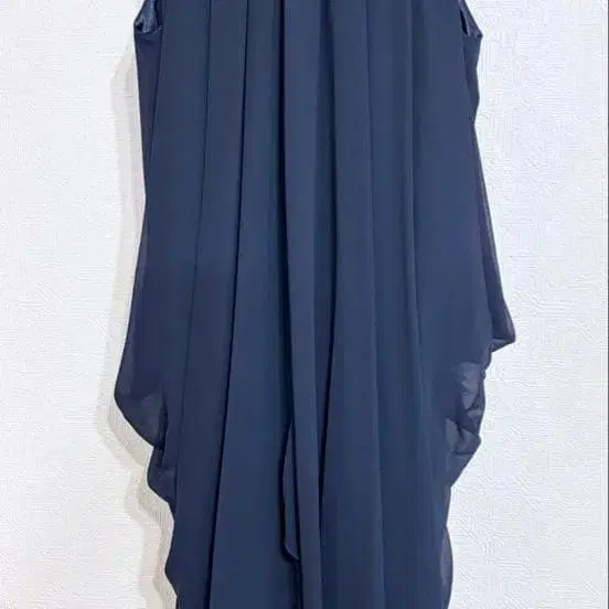자동 번역되었어요. 원문보기네이비 슬리브리스 드레스, 리본 포함, 플리츠 디자인.