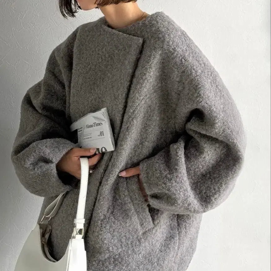 [ ebure ] 정가 16.5만 수리 알파카 샤기 코트 노카라 그레이