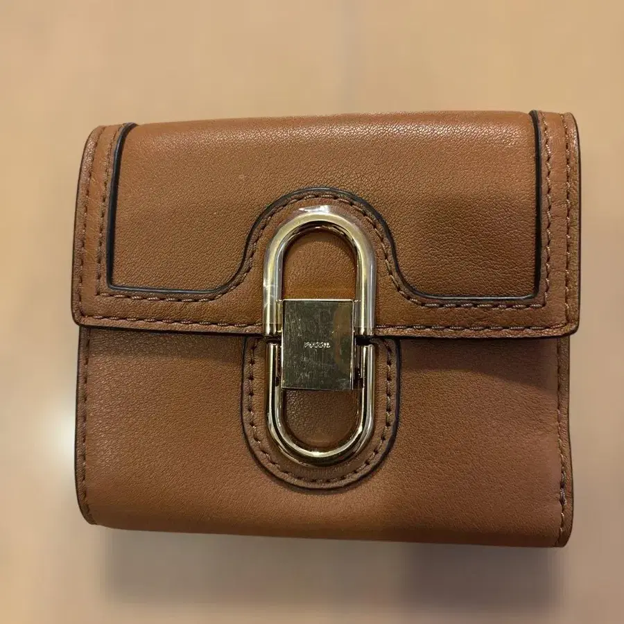 고품질 가죽 소재의 브라운 3단 폴더형 지갑, 카드 포켓 부착.