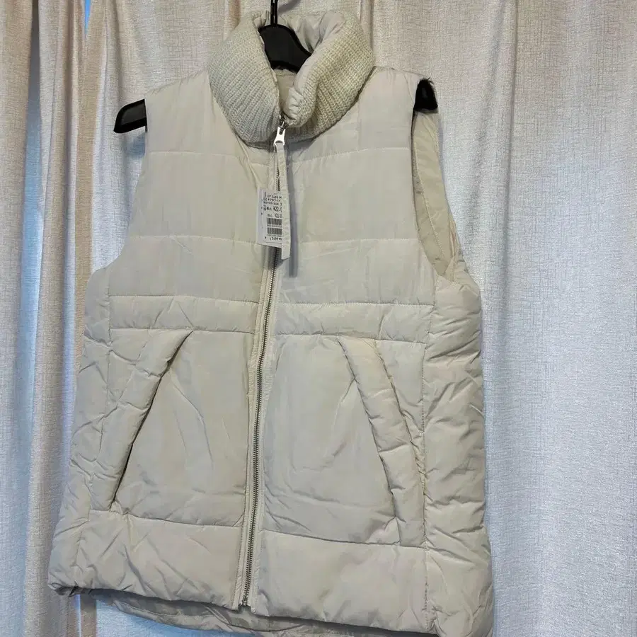 아이보리 색상의 다운 베스트입니다. 지퍼와 프론트 포켓이 있습니다. - 브랜드: MEDOC - 색상: 아이보리 - 스타일: 다운 베스트 - 특징: 지퍼, 프론트 포켓 있음 - 디자인: 슬리브리스, 리브 니트 옷깃 방문해 주셔서 감사합니다. 사이즈 - M