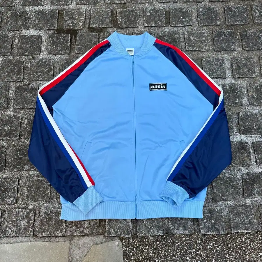 영국을 대표하는 락밴드, Oasis (오아시스)의 30주년을 기념한 [Live Forever] 전시의 오피셜 아이템. 프론트의 로고 자수와 트랙 자켓 특유의 절개 배색이 인상적이며, 음악 굿즈이면서도 패션 아이템으로서 완성도를 갖춘 한 벌입니다.