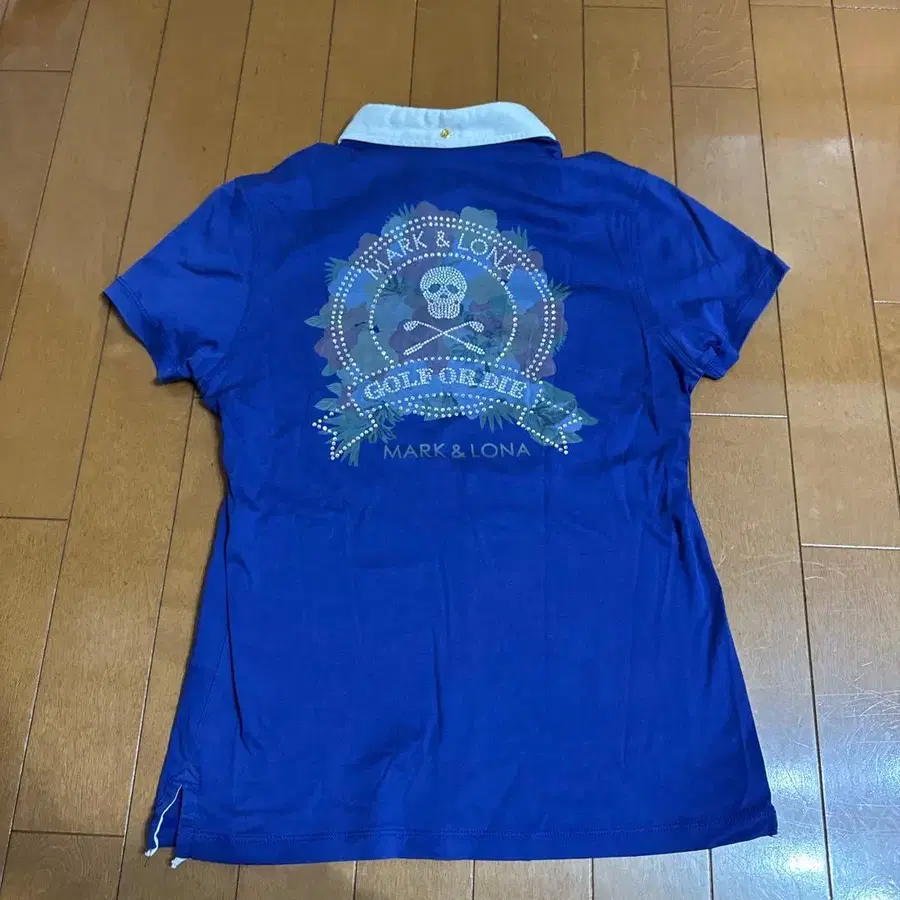 블루 100% 코튼 소재, 골프 오어 다이 프린트가 특징인 S 사이즈 셔츠.