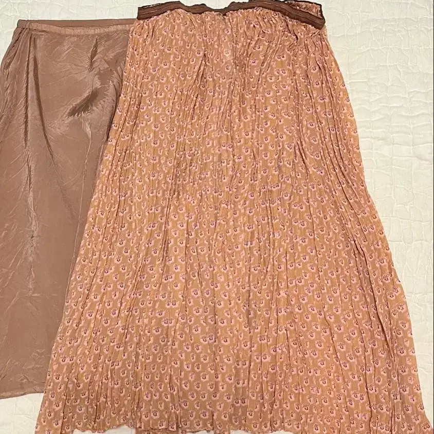 드로어 플라워 프린트 플리츠 스커트 실크 정가 15만