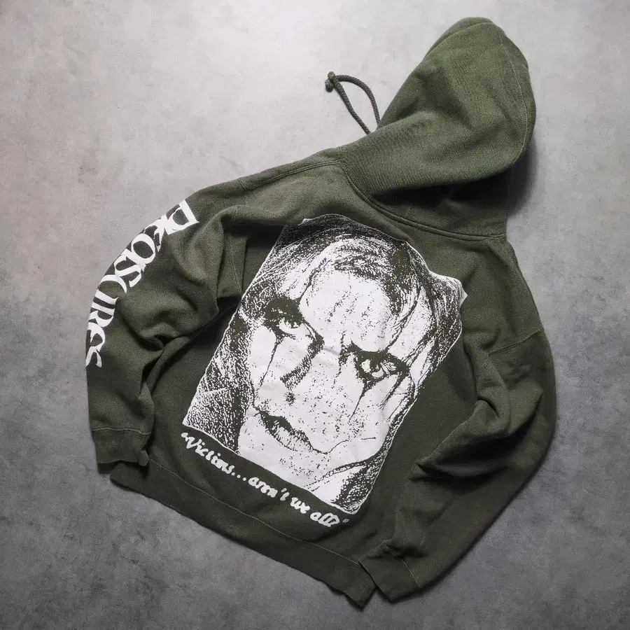 pleasures 후드티 속기모 풀오버 백 프린트 소매 프린트
