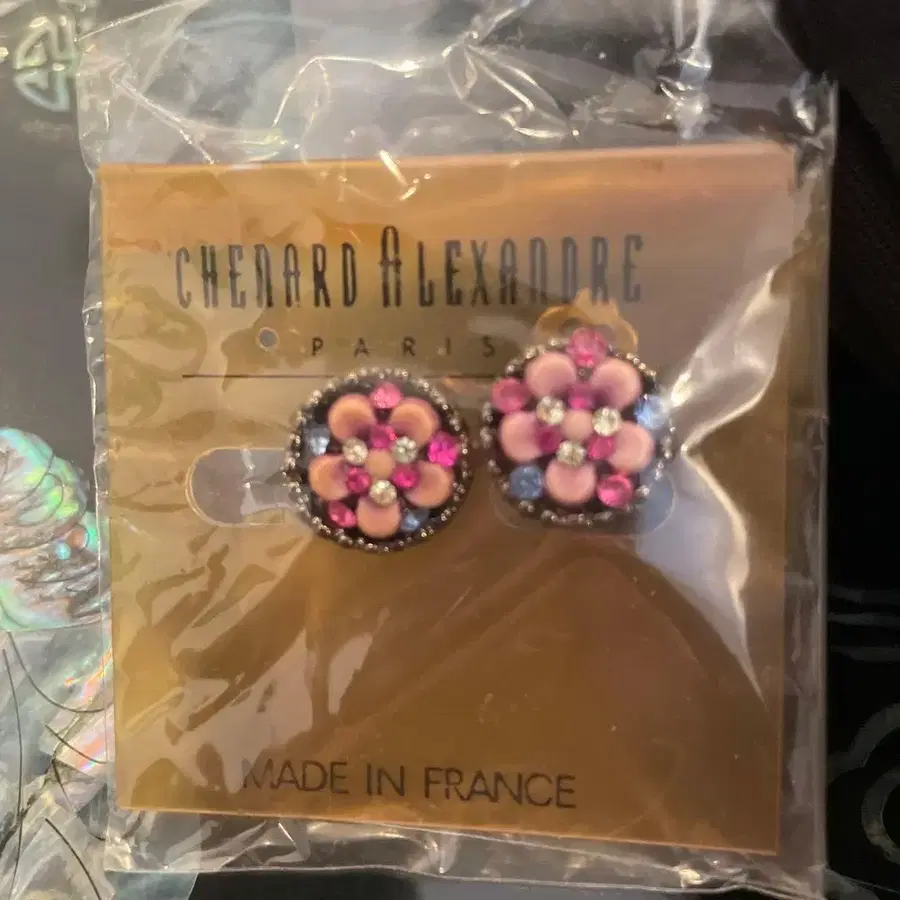 플라워 디자인의 스터드 귀걸이, 프랑스제. - 브랜드: CHENARD ALEXANDRE - 제조국: 프랑스 - 디자인: 꽃 모티브 - 색상: 핑크, 블루, 클리어 - 스타일: 스터드 귀걸이 방문해 주셔서 감사합니다.