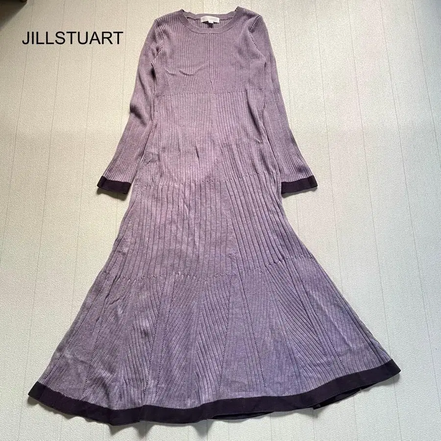 JILLSTUART 바이컬러 리브 니트 원피스 스모키 퍼플 2