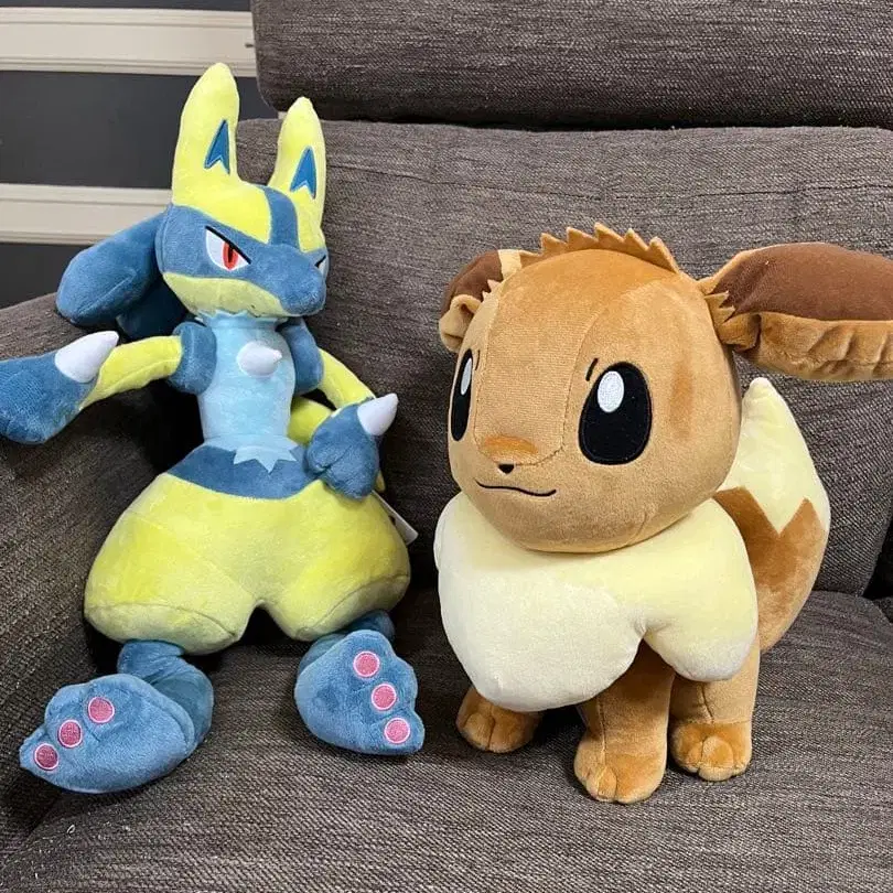 인기 포켓몬, 이브이와 루카리오의 봉제 인형 세트입니다.