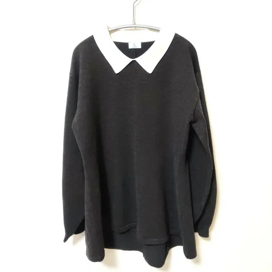 니트로 짜서 만든 옷깃이 단정한 풀오버 니트는 루즈핏 플레어 라인입니다. 1회 착용으로 깨끗한 상태입니다. 중고이며 자택 보관이므로 이해해 주시는 분만 부탁드립니다. 방문해 주셔서 감사합니다.