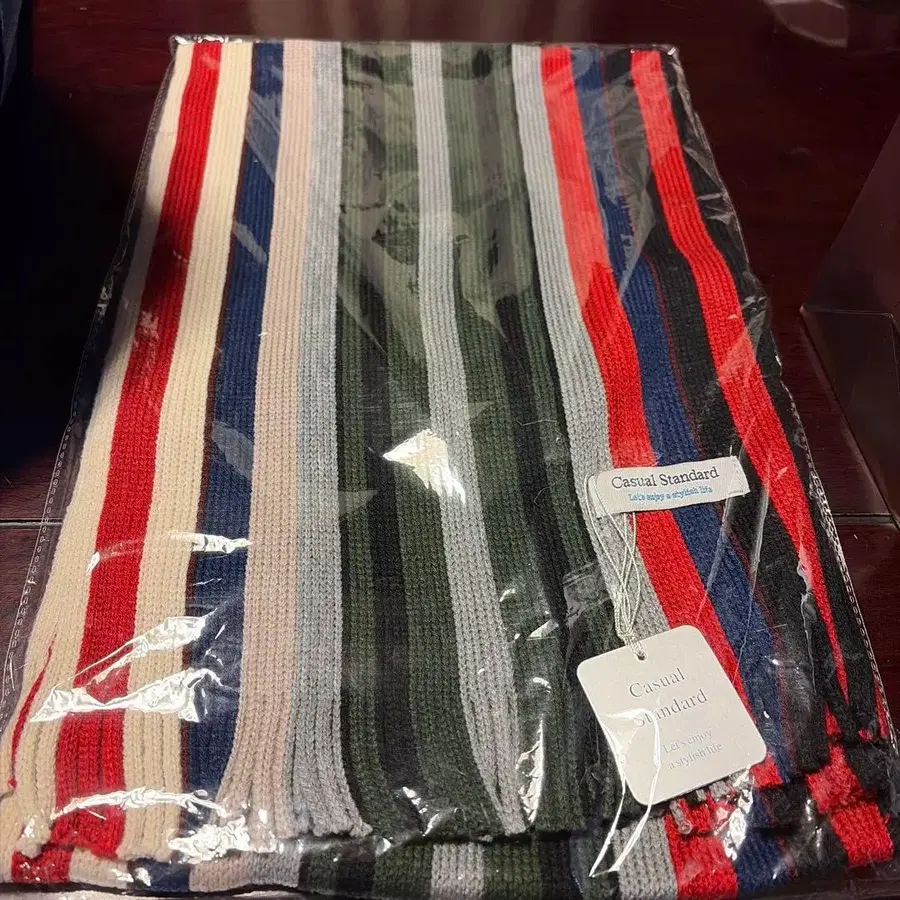 다채로운 스트라이프 디자인의 아크릴 소재 머플러.