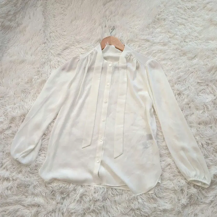 투모로우랜드 맥피 화이트 리본 포함 긴팔 셔츠 블라우스