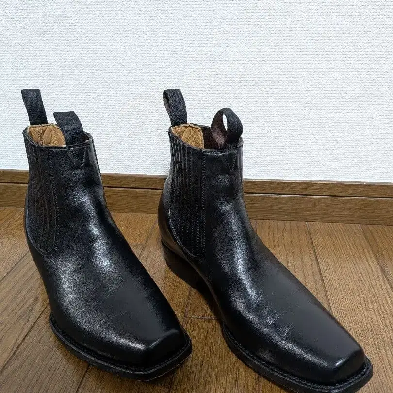 멕시코제 참라 사이드 고어 부츠입니다. 스퀘어토에 하이힐 느낌으로 웨스턴 부츠의 분위기가 있습니다. 밑창에는 어느 정도 흠집이 있지만, 탑에는 약간의 주름 선이 있는 정도입니다. 사이즈는 27.5이지만, 슬림한 디자인 덕분에 맨발 길이가 25.5cm인 판매자도 뒤틀림 없이 신을 수 있었습니다.