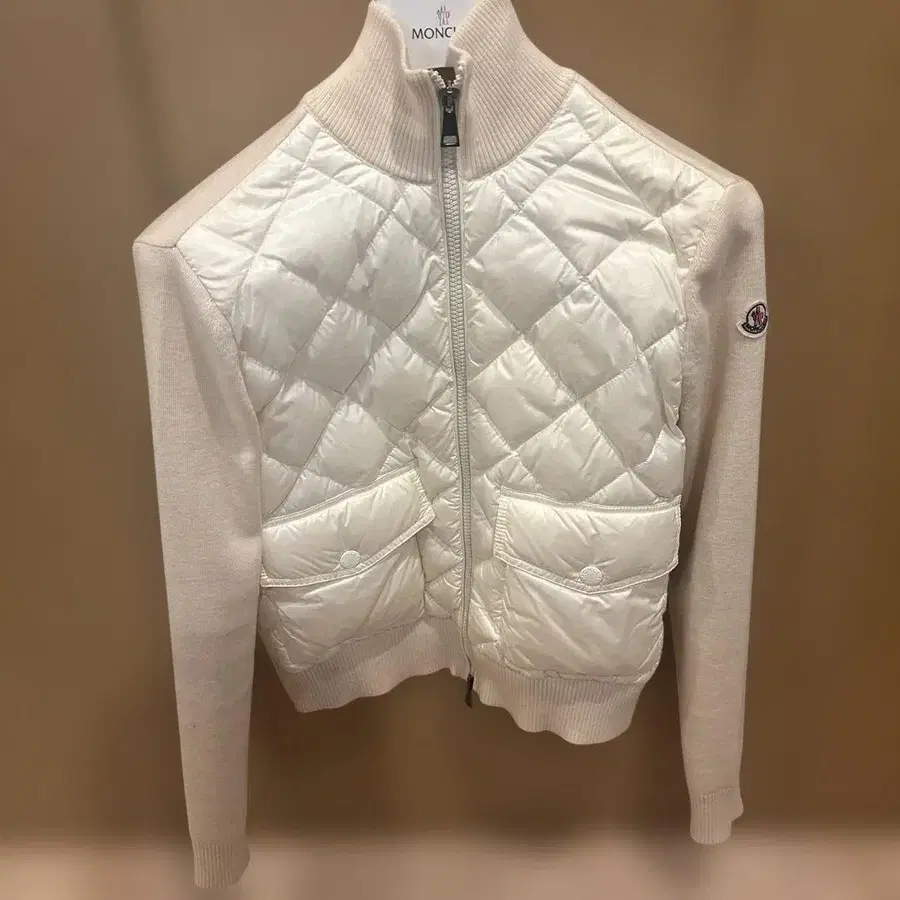 퀼팅 디자인의 다운 자켓, 프론트 포켓 부착으로 실용적입니다. - 브랜드: Moncler - 색상: 화이트 - 디자인: 퀼팅 - 소재: 다운/니트 - 포켓: 프론트 포켓 있음 사이즈 xs 작년에 구매하여 한 시즌 착용했습니다. 니트 부분은 아이보리, 다운 부분은 화이트 조합입니다. 얼룩이나 올풀림 없이 깨끗한 상태입니다.