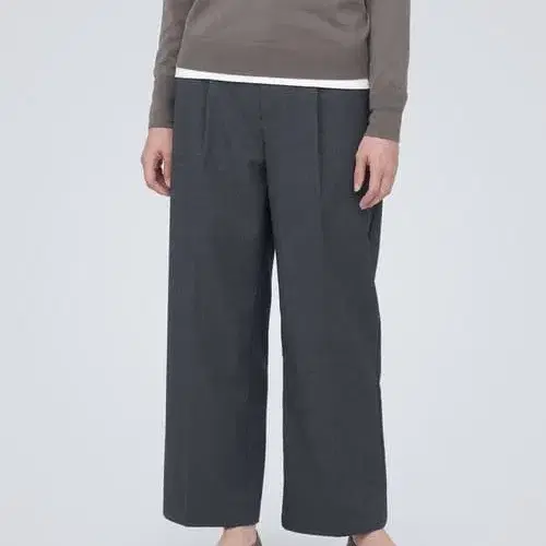 프론트 오픈에 뒷부분은 밴딩 사양. 앞면에 원턱을 넣은 와이드 스트레이트 팬츠입니다.