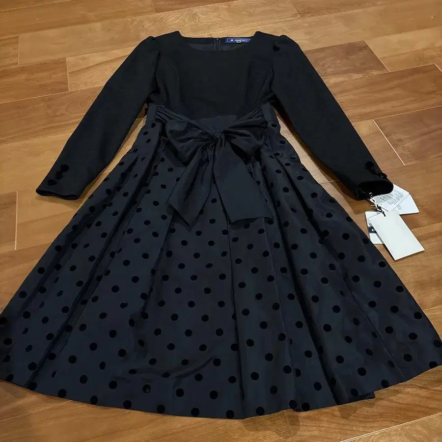 manana suerte 롱 원피스 도트 도트 올 패턴 블랙 블랙