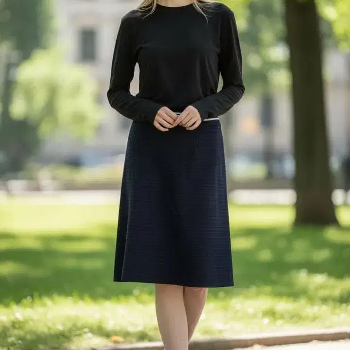 월드 네이비 플레어 스커트 무릎 기장