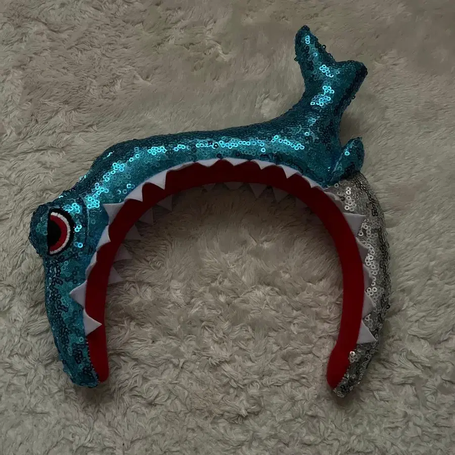 파란색 스팽글 상어 모양 머리띠, 코스프레 및 이벤트에 최적.