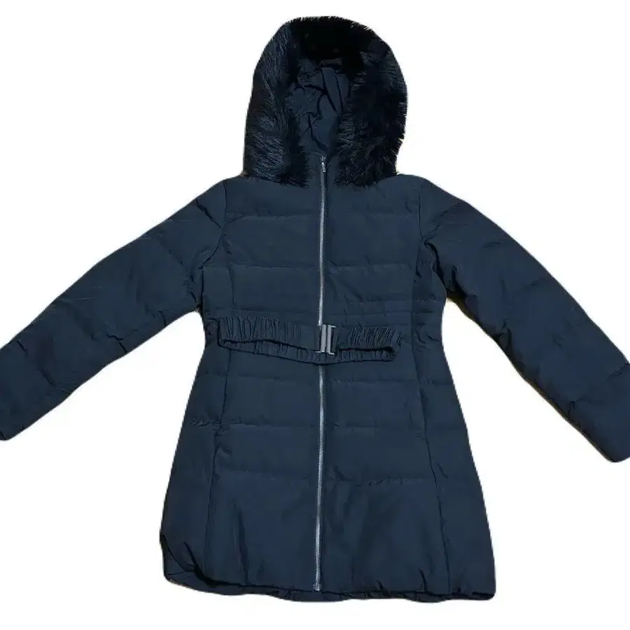 퍼 달린 블랙 다운 자켓 벨트 포함