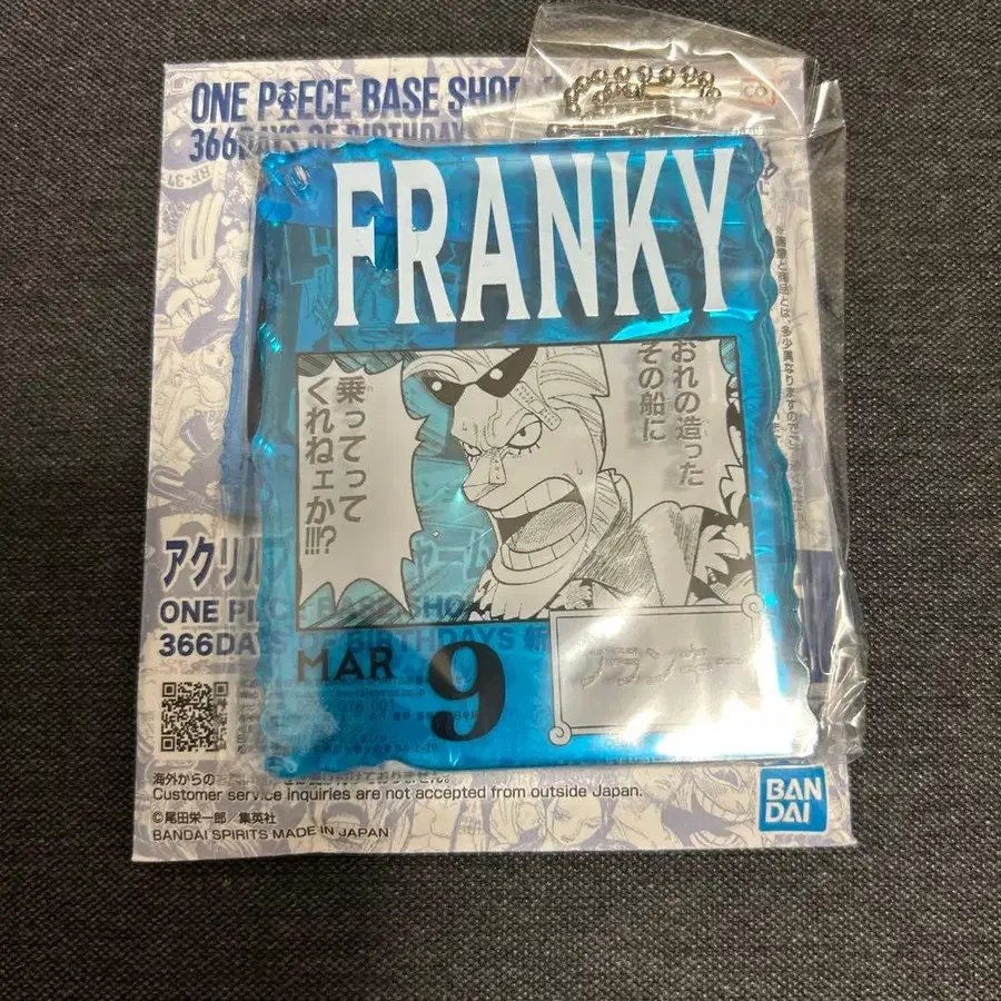 원피스 베이스 샵 복권 366DAYS OF BIRTHDAYS 1~3월 아크릴 블록 참상 프랭키 내부 가방 미개봉입니다. 타이틀 - 원피스 아이템/종류 - 키링 원피스/캐릭터명 - 프랭키