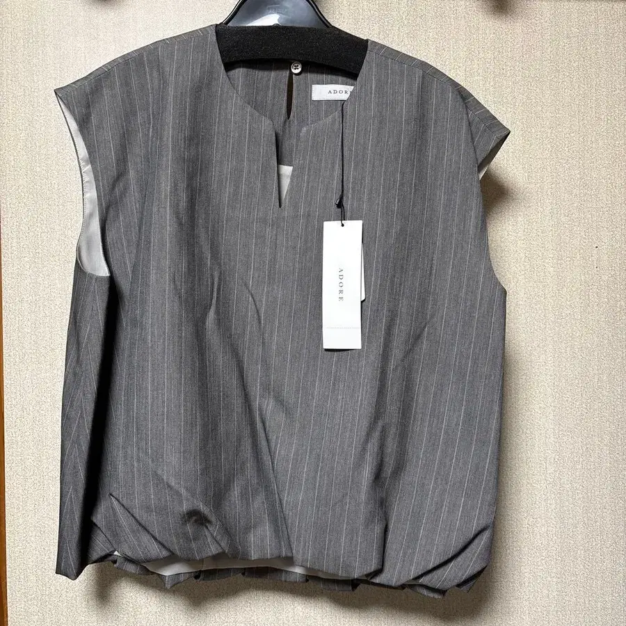 스트라이프 패턴의 슬리브리스 벌룬 실루엣 상의, 사이즈 38, ABODY 브랜드. - 브랜드: ABODY - 사이즈: 38 - 가격: 33,000엔 - 디자인: 스트라이프 패턴 - 스타일: 슬리브리스 - 특징: 벌룬 실루엣