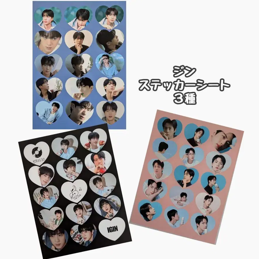 BTS 진 스티커 시트 3종 세트 2600엔 낱개 판매 1장 1000엔 원 시트 30장의 하트 모양 스티커입니다. BTS JIN 진 WWH IGIN 라네즈 SPUR 방탄 ARMY ARMY 뉘앙스 김석진 BTS 굿즈