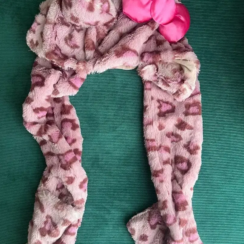 방문해 주셔서 감사합니다! 유니버셜 스튜디오 재팬 (USJ)에서 구매한 헬로키티 **머플러 달린 팬캡 (햇)**입니다. 핑크색 레오파드 무늬에 커다란 새틴 핑크 리본이 달린 매우 귀여운 디자인입니다. 머플러 끝에는 장갑 (포켓)이 달려 있어 추운 날 파크에서도 따뜻하게 보낼 수 있습니다. 딸이 사 왔는데 전혀 사용하지 않아 판매합니다. 상태는 좋지만 중고품이라는 점을 이해해 주시면 감사하겠습니다. 잘 부탁드립니다.