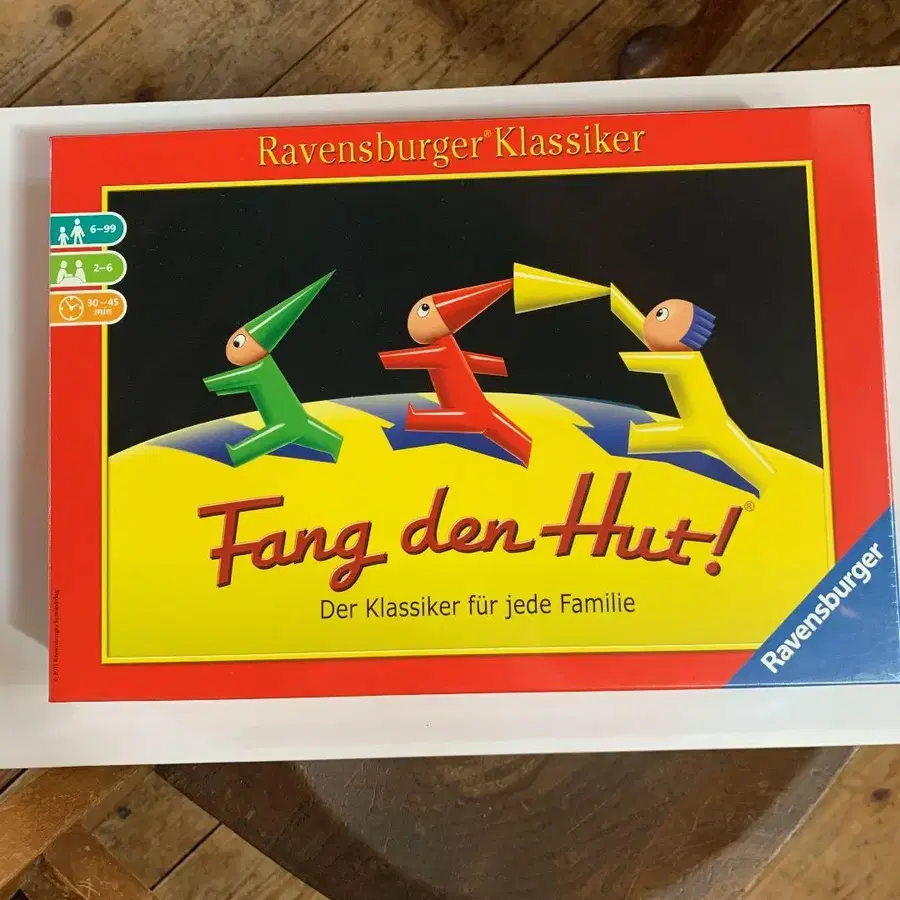 가능한 한 많은 모자를 빼앗아, 빼앗기지 않도록 자신의 진지로 돌아오는, 긴장감 넘치는 게임. 1927년에 탄생. 보드게임 중 가장 오래되었을지도 모릅니다. 6세경부터 2~6인용 소요 시간 약 30~45분 보드 길이 31cm