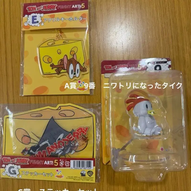 톰과 제리 제일복권 경품 3종 세트입니다. 내용 A상 피규어 9번 닭이 된 타이크 E상 아크릴 키링 G상 스티커 세트 미개봉 새상품입니다! 묶음 판매 한정으로 판매합니다^^