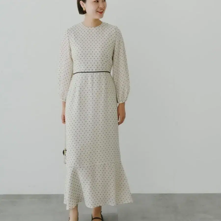 도트 표면이 벨벳 느낌이고, 허리 테이프가 래글런인 등 원단과 실루엣이 예뻐서 코다와리가 느껴지는 원피스입니다. 안감도 아래까지 제대로 있어서 비치지 않고, 액세서리로 꾸미면 포멀한 자리에도 사용할 수 있을 것 같습니다.